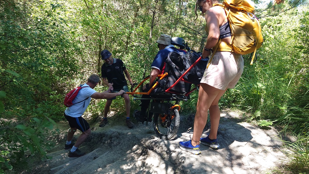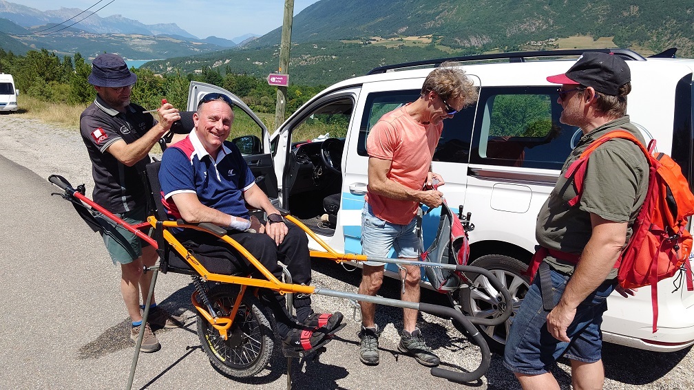 La version électrique des Joëlettes empruntées à une asso locale trop géniale n’était pas de trop, pour un effectif de camarades très entrainants et presqu’entraînés. Une journée énorme à tous points de vue. Conclue par une paëlla réparatrice clairement+amplement méritée.
